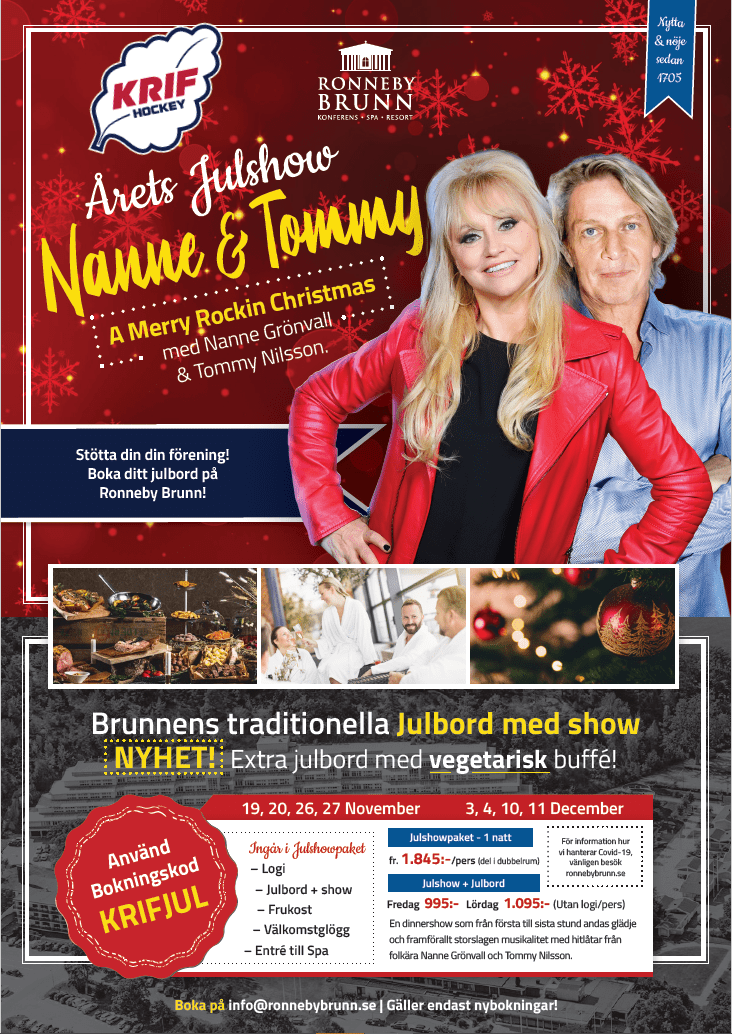 Boka in er för årets julshow på Ronneby Brunn med Nanne Grönvall och Tommy Nilsson!