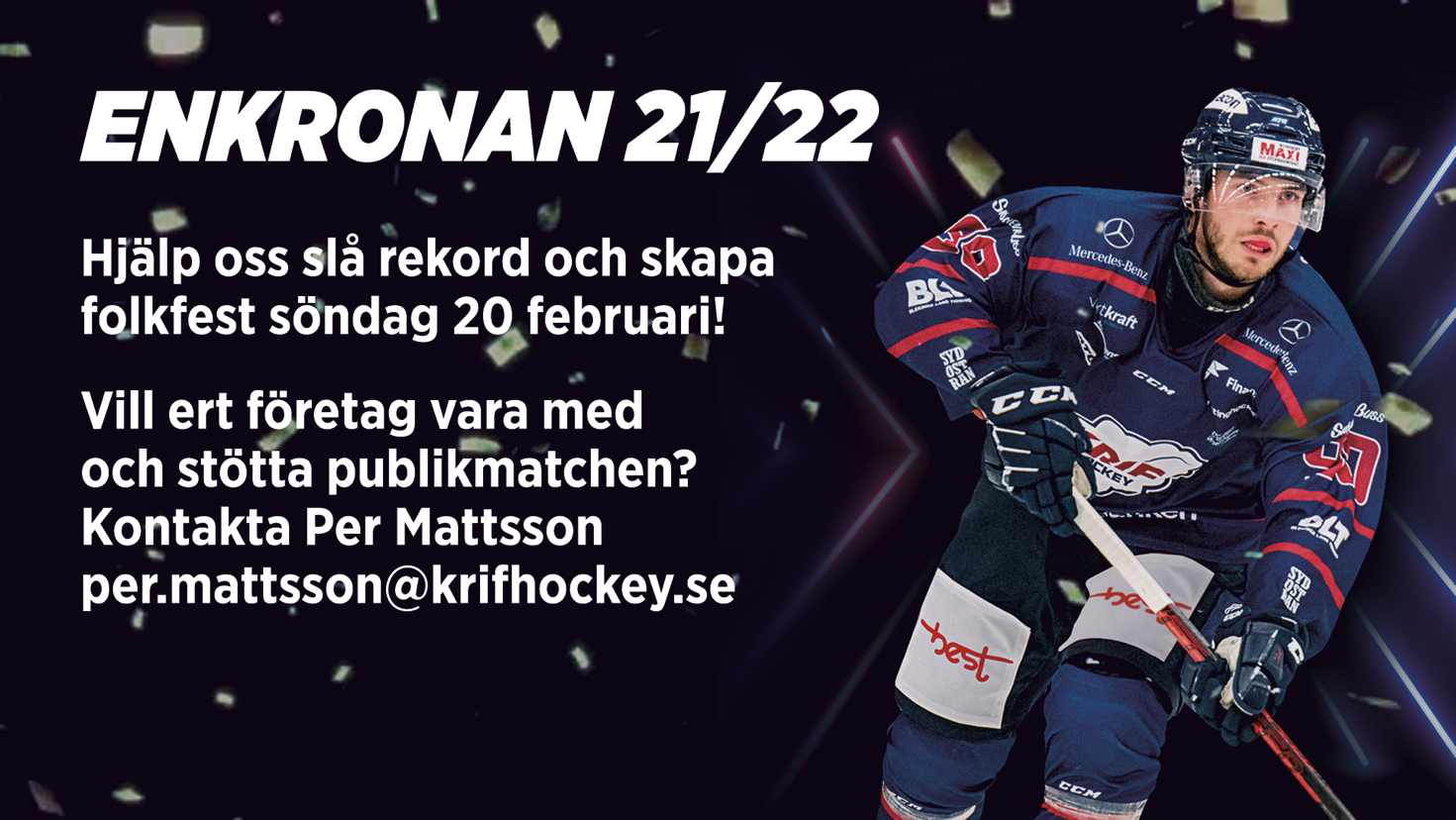 När vi möter Visby/Roma hemma den 20/2 kommer vi att genomföra vår enkrona-match denna säsong, vilket innebär att vi frågar alla samarbetspartners och supportrar om de vill vara med och stödja vår verksamhet. Vi kommer att räkna all publik och spelare under en hel helg (torsdag-söndag, 20/2-23/2). Vi kommer att ha ett tak på totalt 2500kr för en enkrona. Det går att välja mellan Enkrona (max 2500kr), Tvåkrona (max 5000kr) eller Trekrona (max 7500kr).