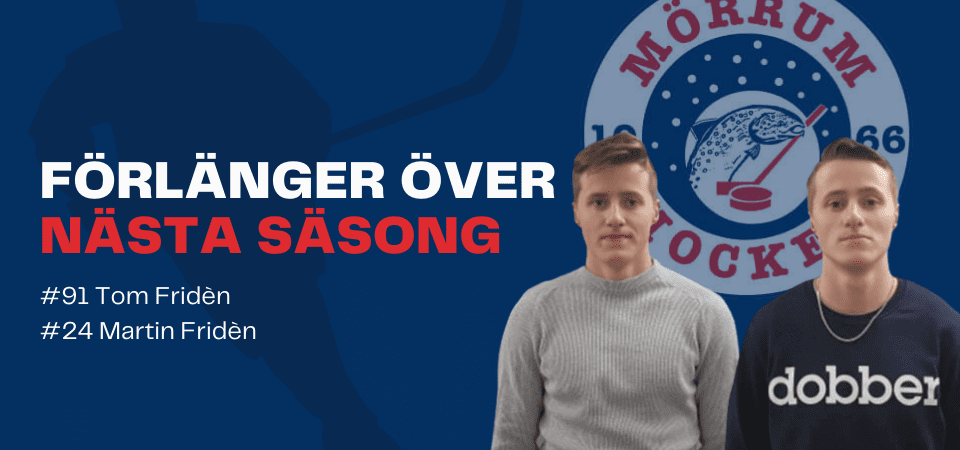 Vi är glada att kunna presentera de första förlängningarna inför säsongen 2022/2023. Tom Fridèn och Martin Fridèn kommer att fortsätta spela i Mörrum. Detta är två talangfulla spelare som kommer att vara en viktig del i det nya lagbygget. Tom kommer att spela i tröja nummer 91 och Martin i tröja nummer 24.