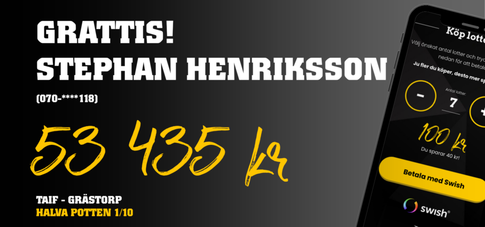 Vinnaren av Halva Potten 1/10 blev Stephan Henriksson som vann 53 435 kr.