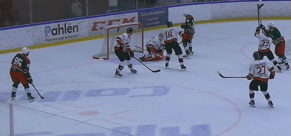 Efter drygt halva den sista perioden kom till slut det som kan betraktas lite som spiken i kistan på hemmalaget när Piteå skickade in sitt sjätte mål i matchen. Det efter att en Piteåback fick en fri yta från kanten och sedan pricksköt in pucken vid sidan om Joel. Ett mål som kanske inte såg helt otagbart ut och som gjorde att uppförsbacken för hemmalaget blev än brantare.