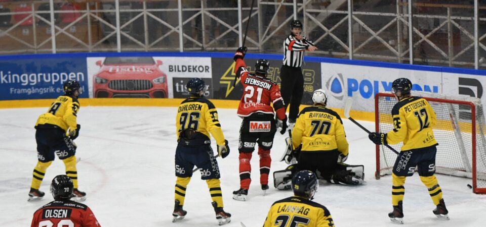 1-0 (PP1) 04:26 Jacob Svensson (Loa Milfors, Henrik Olsén) 2-0 (EQ) 13:21 Elias Degnell (Alex Brännstam, Henrik Olsén) 3-0 (EQ) 22:10 Jacob Svensson (Sebastian Walfridsson, Philip Eriksén) 4-0 (EQ) 23:11 Axel Levander (Anton Schagerberg, Rasmus Kahilainen) 4-1 (EQ) 55:17 Viktor Mattsson (Karl Pettersson, Sebastian Lindström) 5-1 (PP1) 58:12 Jesper Wiberg (Alex Brännstam, Maximilian Kilpinen)