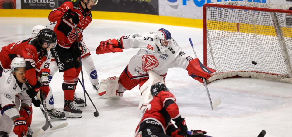 Så småningom kunde HHC även börja gå till anfall, men målchanserna var få – åt båda håll – och första perioden blev mållös.Det hände saker även i början av andra perioden, men med hemmaögon sett var det positiva saker då Henrik Olsén tryckte sig förbi sista försvararen, skar in från högerkanten, rundade Eric Forsberg i målet och sprätte in 1–0.