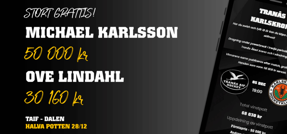 Vinnare av Halva Potten 28/12 blev Michael Karlsson (50 000 kr) och Ove Lindahl (30 160 kr).
