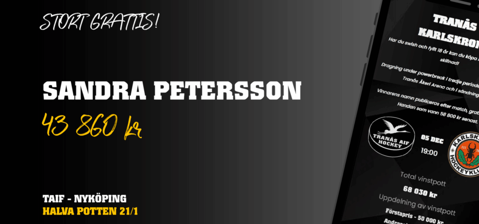 Vinnare av Halva Potten 21/1 blev Sandra Petersson (43 860 kr).