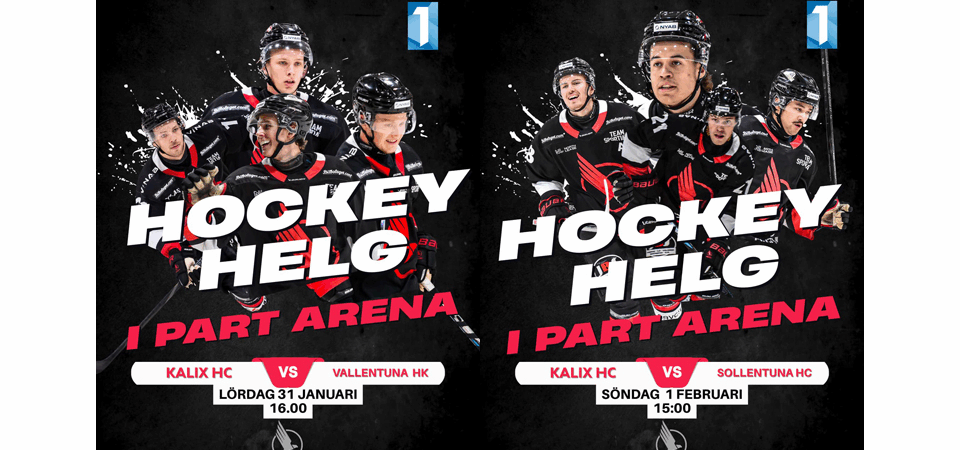 tor 29 jan 10:37 Hockeyhelg i PART Arena Lördag 31 januari kl. 16.00 mot Vallentuna HK. Söndag 1 februari kl. 15.00 mot Sollentuna HC. Välkommen!