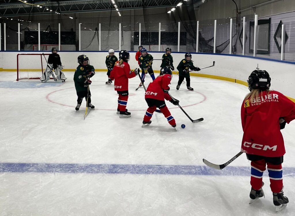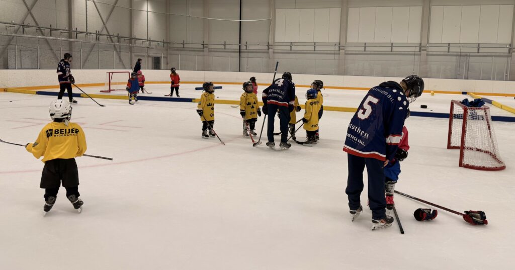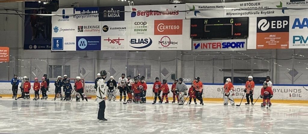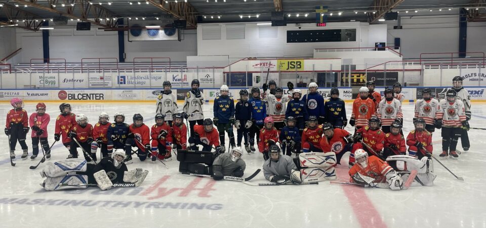 Denna helg körde killarna och tjejerna tillsammans i B-hallen. Flera av våra flickor var med och körde med Blekingetjejerna på deras ”Tjejhockeydag” de anordnade på Jössa. Även denna lördag hade några nya stjärnor hittat till oss – så roligt att vi fortfarande får nya kompisar på isen. Lördagen började med att alla delades in i sina grupper och olika stationer gjordes. Vi försöker få in olika moment genom övningarna så man på roliga och utmanande sätt övar sin skridskoåkning. Vi hade även denna lördag finbesök och möjligheten för spel med juniorerna Oscar Seydlitz, Hugo Yngsell och Ludwig Johansson, alltid lika uppskattat! Som sig bör avslutade vi Hockeyskolan med godisvarv och raketen. Nästa lördag kör vi igen! (Rapport: Emelie Lennartsson)