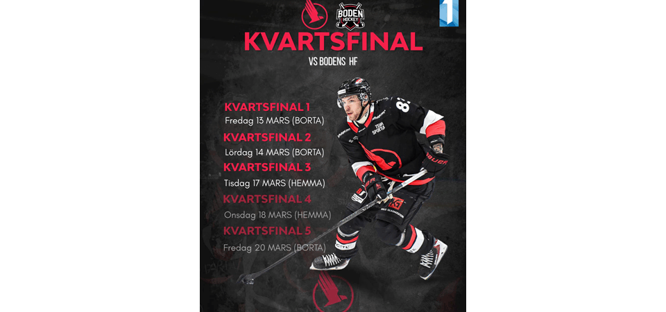 Dags för kvartsfinal mot Bodens HF i bäst av 5 matcher.