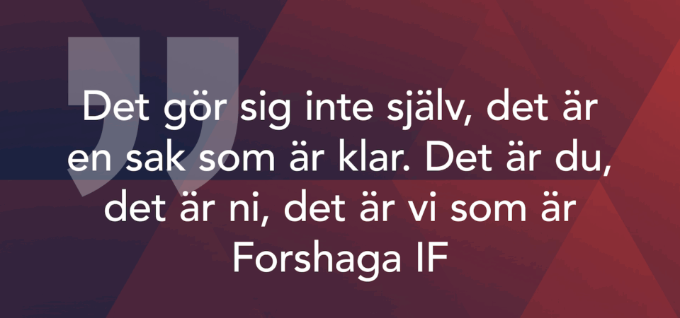 Det gör sig inte själv, det är en sak som är klar. Det är du, det är ni, det är vi som är Forshaga IF. Tillsammans kan man göra skillnad bevisligen. Under säsongen har det rullat på. Såklart dyker det upp grejer, men säsongen är genomförd. Därför vill vi rikta ett tack till alla som stöttat oss. Om det är så en swishad slant, ett besök, ett inköp av en kopp kaffe, ett pass i seket, i cafeterian, ledning av ett ungdomslag, eller om du bidragit som hantverkare, sponsor eller helt enkelt bara hejat på föreningen genom tuffa tider. Vi är så oerhört tacksamma för just det. Utan det är vi inget.