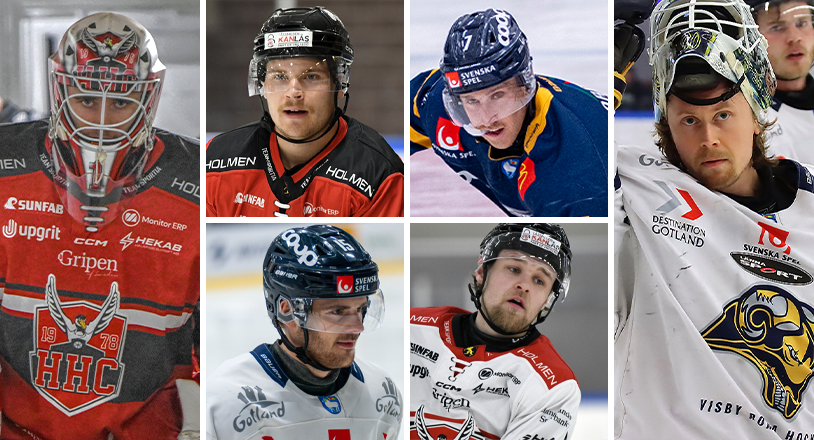 Steinbergs, Sundin, Påhlsson, Bjurström, Torstensson och Hector – alla har de nyckelroller i Hockeyettan-finalen. FOTO: FLYWOOD STUDIO, EMELIE BERGSTRÖM, JOEL HENRIKSSON, LEIF HELLERIN
