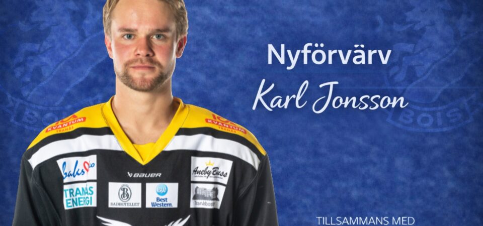 Mariestad Bois kan i samarbete med Hemtrevliogt i Skaraborg nu presentera säsongens första nyförvärv. Och det är inte vilket nyförvärv som helst, utan en rutinerad backpjäs som haft en stor roll i söderseriens fyra, Tranås, under säsongen. Karl Jonsson är en rejält spelande tvåvägsback, en rightare som trots en defensiv roll i Tranås stod för fina 14 poäng under säsongen.
