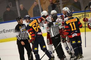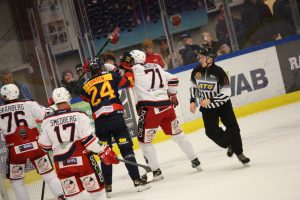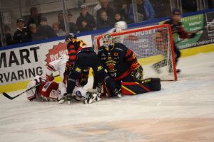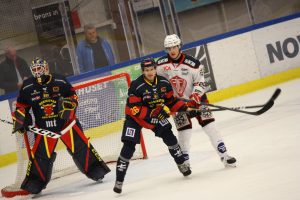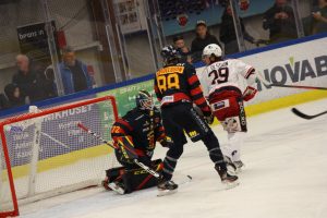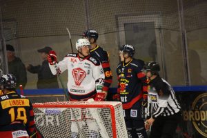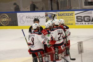 – Ja, det drar iväg lite på slutet. Första perioden går klart till oss. Andra är konstig. Den böljar fram och tillbaka och puckarna studsar och far. Vi har en massa lägen. De skapar också några lägen framför kassen men ”Fille” i målet var otroligt stabil i dag. I tredje böljar det lite och efter 3-0 är det klart.