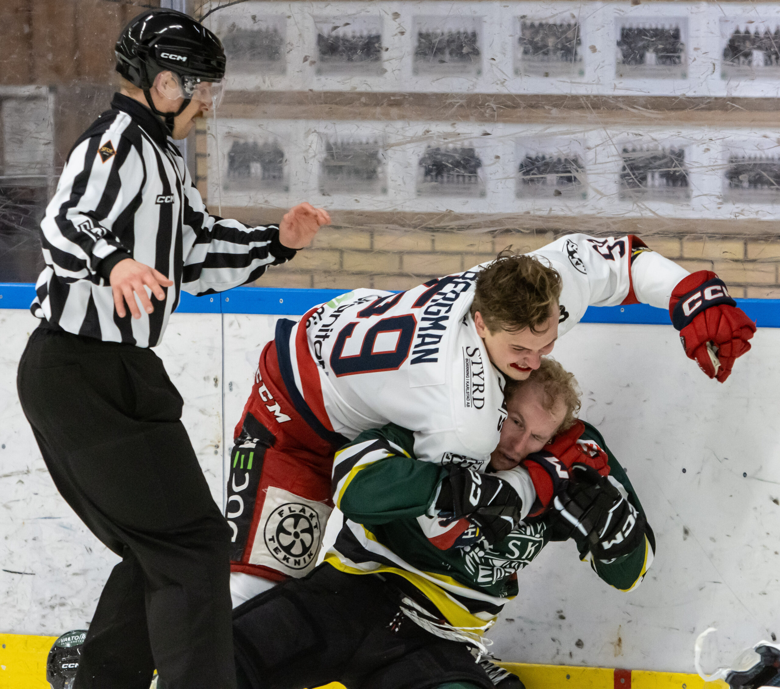 — Hahaha, du tänker på Forshaga (där det bland annat blev en brottningsmatch, se bild nedan; reds anm)! Ja, jag vill inte ge mig i närkamper, jag vill visa att man är där, liksom. Jag gillar att spela med adrenalin.