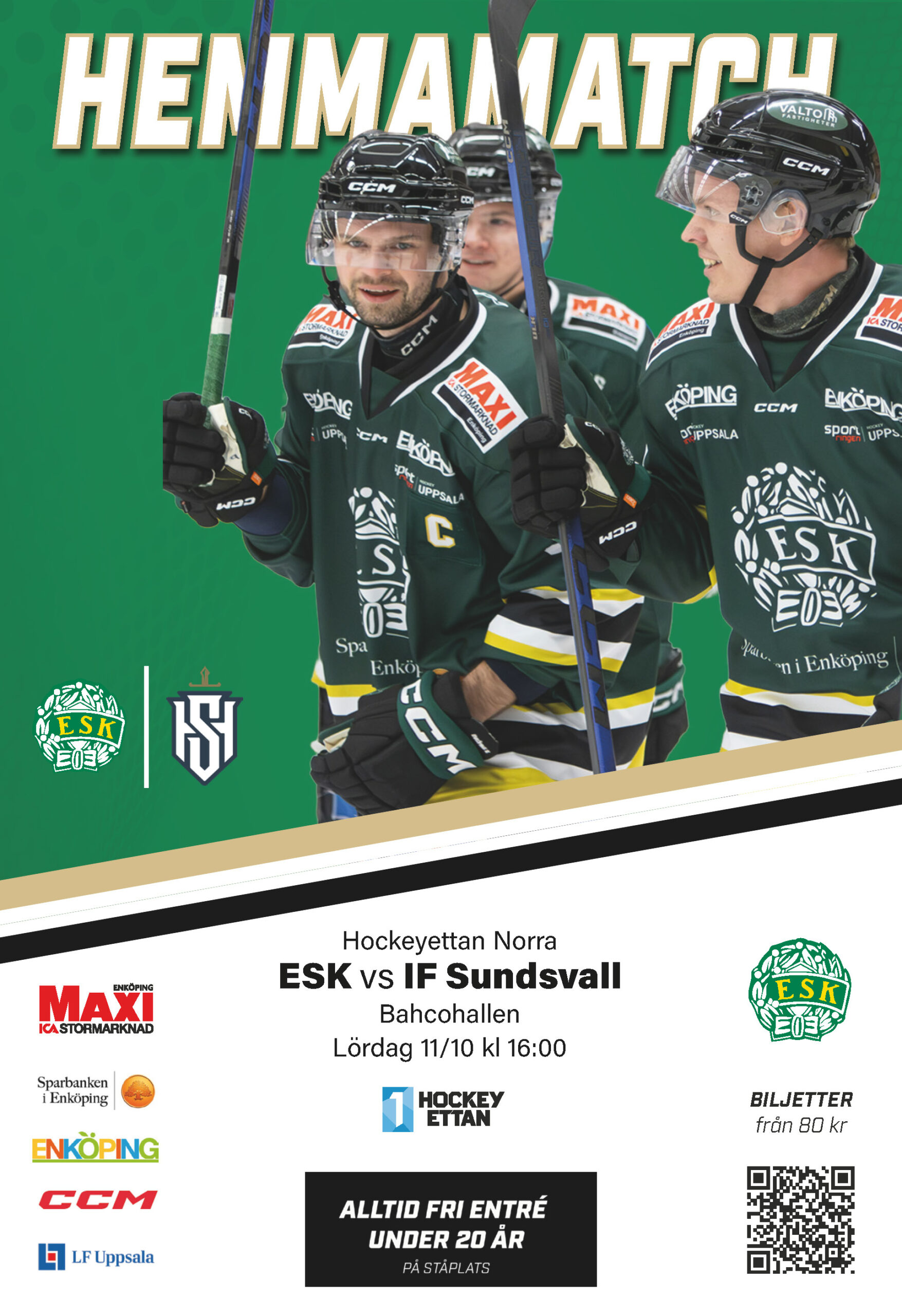 Matchen spelas i Bahcohallen på lördag kväll med nedsläpp kl 16. Kan man inte vara på plats så sänds den live på Hockeyettan Play.