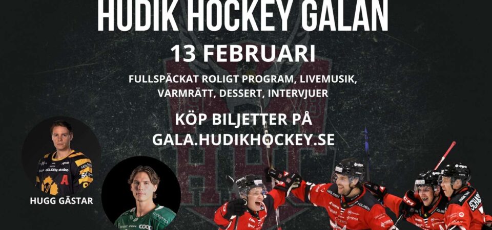 Fredagen den 13 februari välkomnar vi sponsorer, supportrar, publik, företagare och alla som vill ha en rolig kväll till Hudik Hockey galan på med ett fullspäckat roligt program, livemusik från scenen, DJ och tvårättersmiddag.