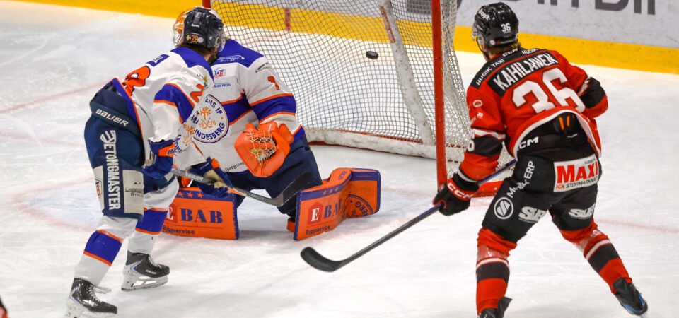 Alex Brännstam är siste hudikspelare på pucken som via en Lindlövenförsvarare letar sig in bakom Frykholm i bortakassen till 2-1 och innan första perioden var klar gjorde Linus Lindblom 3-1 i powerplay.