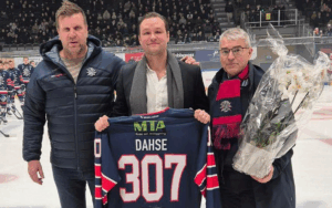 Innan nedsläpp spelades det upp videohälsningar på jumbotronen från bland andra NHL-spelaren John Klingberg och förre fotbollsstjärnan Tomas Brolin och Dahse höll sedan ett känsloladdat avskedstal nere på isen.