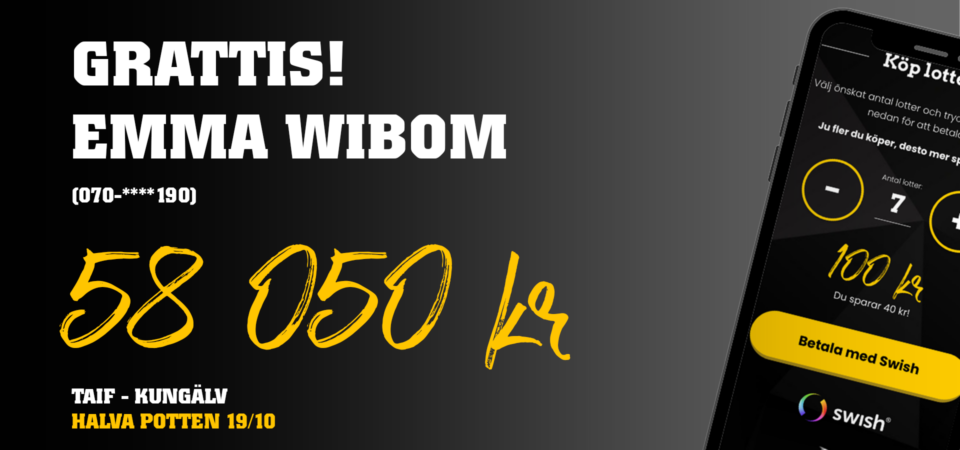 Vinnaren av Halva Potten 19/10 blev Emma Wibom som vann 58 050 kr.