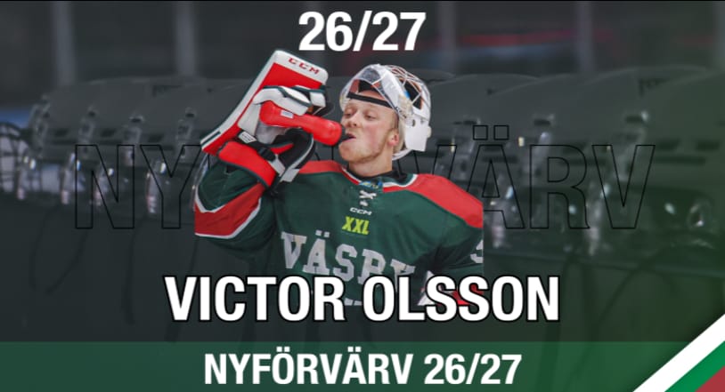 Då hälsar vi glädjande nog Victor Olsson välkommen tillbaka till Väsby Hockey. Målvakten kommer närmast från en säsong Mariestad Bois men tillbringade där innan tre framgångsrika i Väsby.