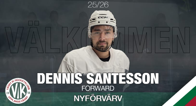 Väsby Hockey kan glädjande meddela att den rutinerade forwarden Dennis Santesson är klar för spel. Dennis gör därmed en comeback på isen efter att han under tre raka säsonger varit assisterande tränare för tidigare seriekollegan Hanviken.