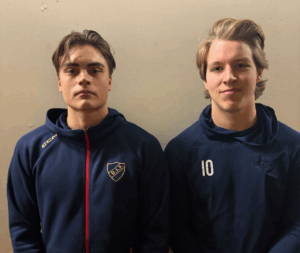Leon Bjelkelöv Brunn (vänster) och Fred Nord – son till gamle storbacken Björn Nord – fanns på isen för Tyresö/Hanviken i segern mot Huddinge (2–1).